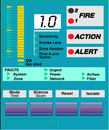 ●一共有七個指示燈,其中一個或幾個燈點亮,表示VESDA系統出現了某種故障;